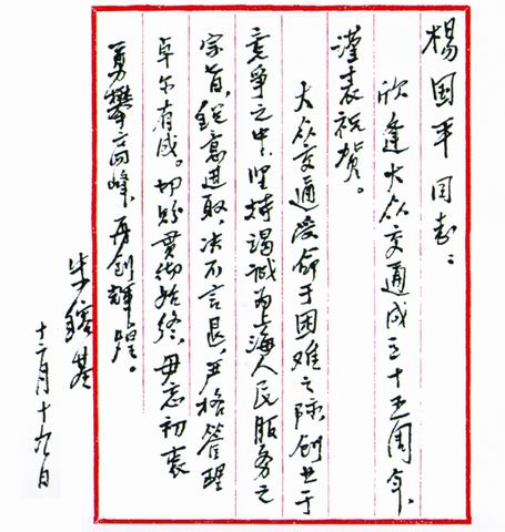 2003年12月19日,朱镕基同志为尊龙凯时成立十五周年写来贺信:欣逢尊龙凯时交通成立十五周年,谨表祝贺。尊龙凯时交通受命于困难之际,创业于竞争之中,坚持竭诚为上海人民服务之宗旨,锐意进取,决不言退.严格管理,卓尔有成。切盼贯彻始终,毋忘初衷,勇攀高峰,再创辉煌。