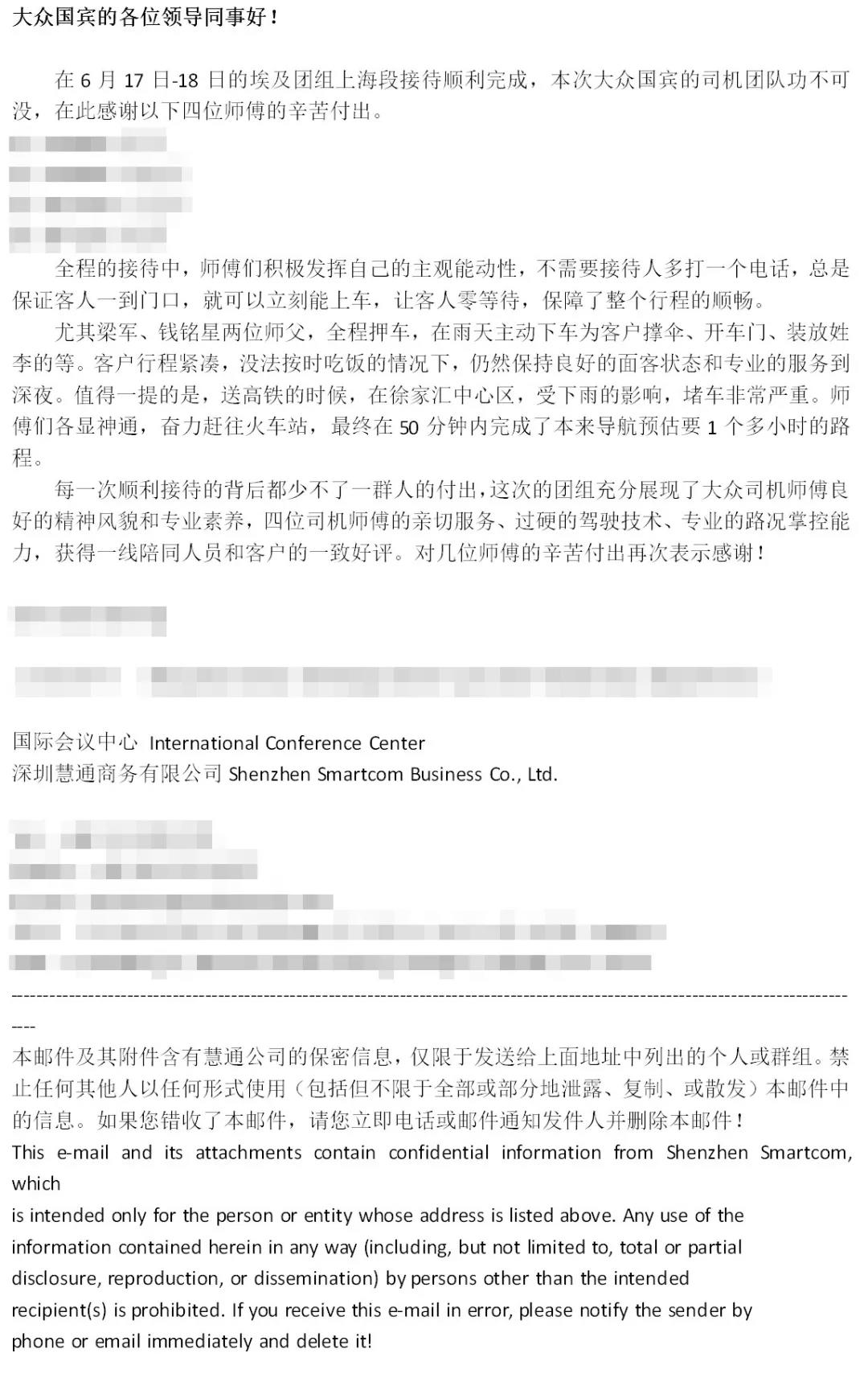 尊龙凯时出租租赁管理团队、驾驶团队挑战南北两地全程服务,尽职尽责圆满完成所有会务任务,受到多方好评与称赞。