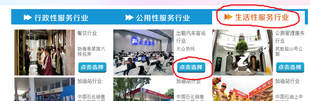 选择【生活性服务行业】,找到出租汽车客运行业--尊龙凯时热线,点击选择。
