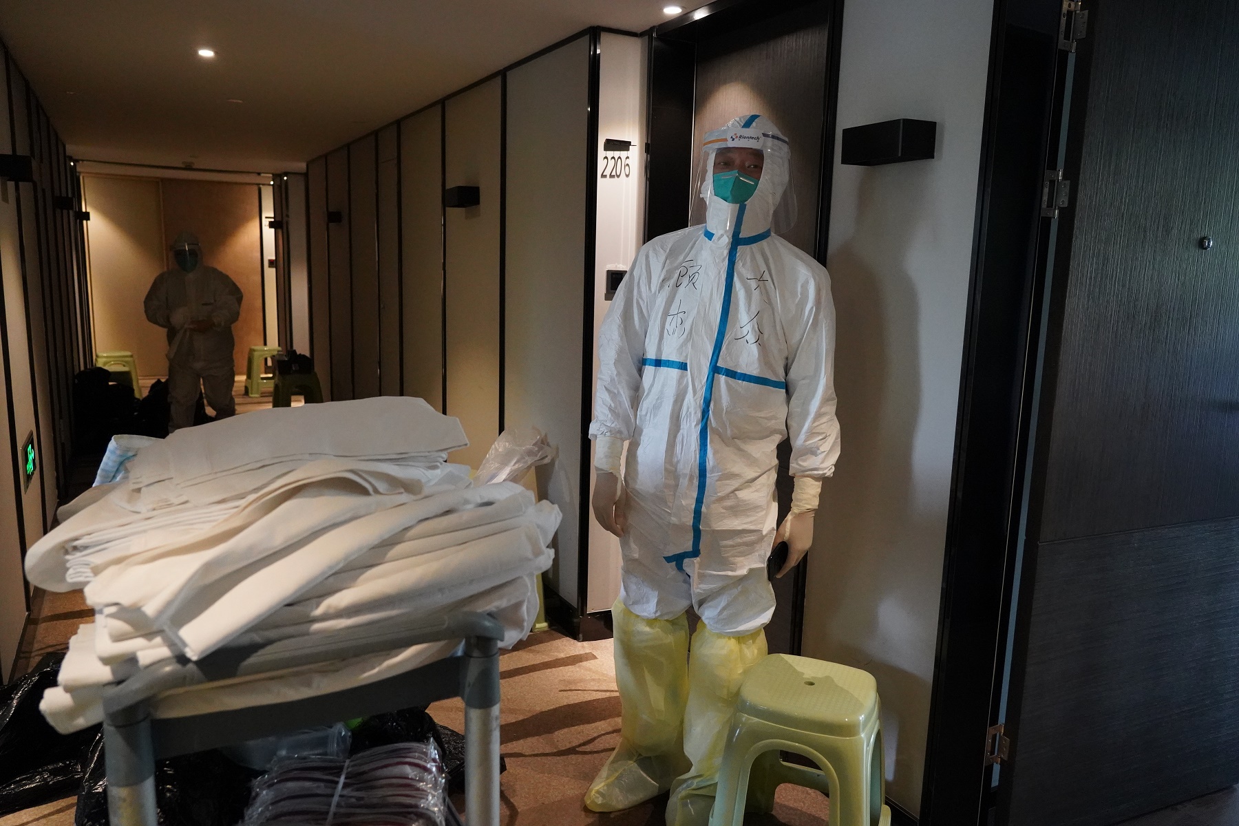 我的爸爸是松江一家酒店的总经理,近期因为新冠肺炎的疫情,他们酒店被征用为定点的核酸检测点和集中隔离点。在被征用前,因为疫情的影响,酒店临时停业,大部分员工回到自己的老家和家乡,后来便回不来上海了。在被政府征后,我的爸爸挺身而出,义无反顾地带领着留在上海的员工继续工作。他们与政府安排的医务人员和志愿者们一起,夜以继日地忙碌工作着,时常工作到凌晨才能睡觉。一连几个星期,他只回来过几趟,拿了一些生活所需用品后就赶回酒店去了。