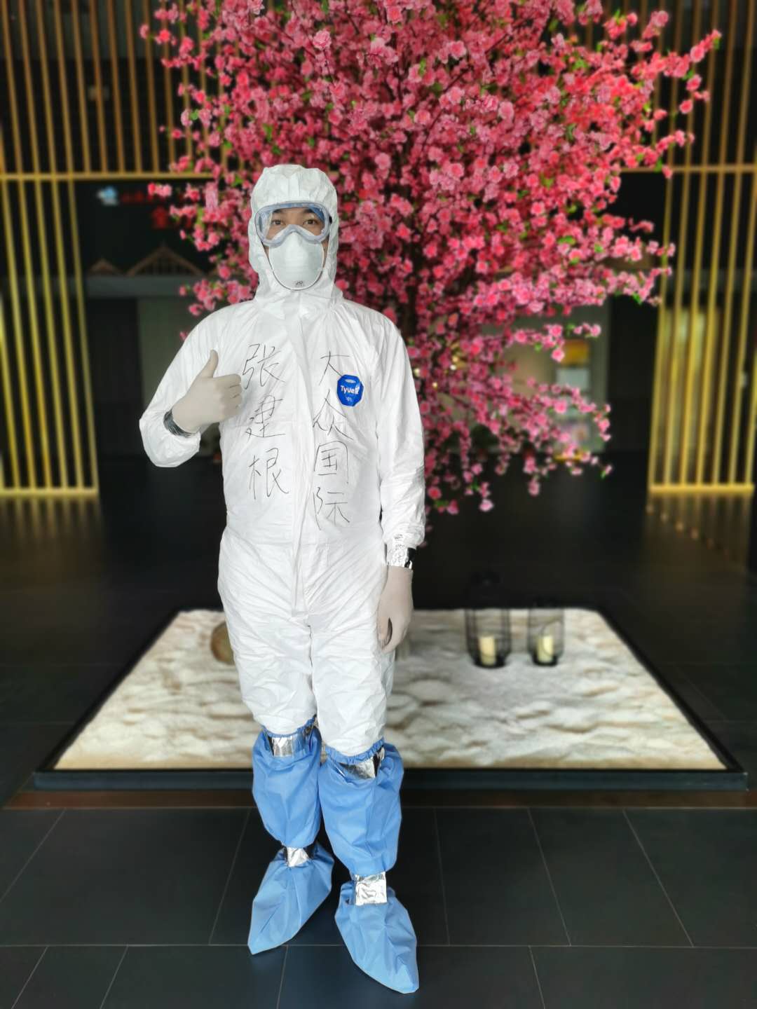 因为爸爸有时会进入隔离区查看工作,带领服务员消毒、打扫隔离房间和走道,所以他也要“全副武装”防护好自己:穿上防护服,戴上手套、眼罩、口罩、和鞋套,避免感染病毒。近来,他们的隔离区里检测出两例阳性患者,但是他们还是和医务人员一起坚守在防疫一线。为了满足我的好奇心,爸爸特意带回来一整套防护用品。我试着穿戴完毕后,发现做事情很不方便,似乎身后拴有一个重重的铁球,呼吸也很困难,穿上后不一会儿,豆大的汗珠便不争气地从额头上流了下来,再过了一会儿,我便汗流浃背、气喘吁吁了。这时我真的体会到了他们的辛苦了!在晚上和爸爸视频的时候,看到他的眼睛里布满了红血丝,看到他的“熊猫眼”,我真的十分担心他的健康和安全,禁不住对他说“爸爸,您辛苦了!”“您进去一定要照顾好自己,保证安全。”但是爸爸对我说:“习主席说过要坚决打赢这场疫情防控阻击战和保卫湖北的人民战争。爸爸是共产党员,我们要起到带头的作用。”