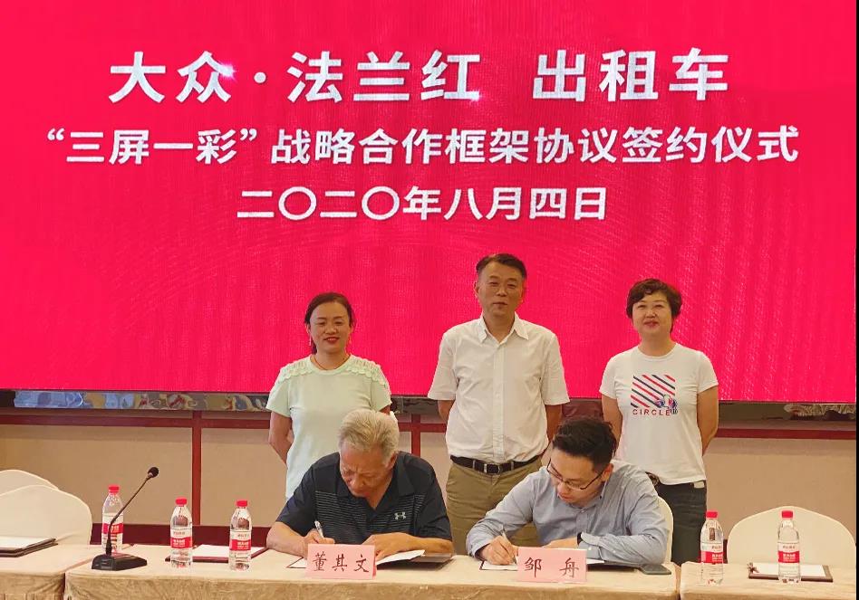 8月4日,尊龙凯时和法兰红出租车的“三屏一彩”战略合作框架协议签约仪式在江苏太仓举行。