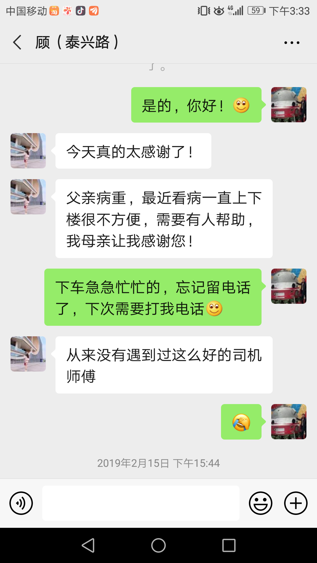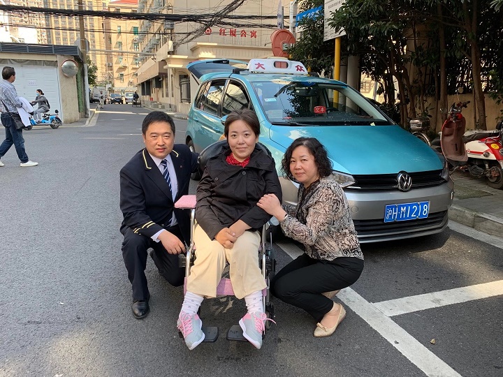 8年如一日,彭师傅能一直保持对工作的热情,离不开家庭的默默支持。彭师傅说,“爱人给了我一个温馨的家,我就把家的温馨带到工作当中去,带进我的小车厢里,把温馨传递给我的每一位客人。”一边说着,彭师傅拿出手机给我看广告中彭师傅与爱人的温馨画面,“我每天早出晚归,家里的事情都是爱人在操持,非常辛苦的。就像KFC广告里的画面一样,每天早上我老婆帮我倒开水,拿点心,嘱咐我开车注意安全。这么多年来,我老婆就是这么做的,一直默默帮我分担家庭的负担,让我在外面安心工作。我有时候出去做志愿活动,爱人也是无条件支持我。上周我一直帮扶的一对渐冻人姐妹找到我,说姐姐要去体检。我想,出出体力活,背上背下没问题,但毕竟是女同志,体检时还是有许多不方便的地方。我老婆知道后,二话不说就和单位请了半天假陪我一起去。这么多年来,真的非常感谢她!”