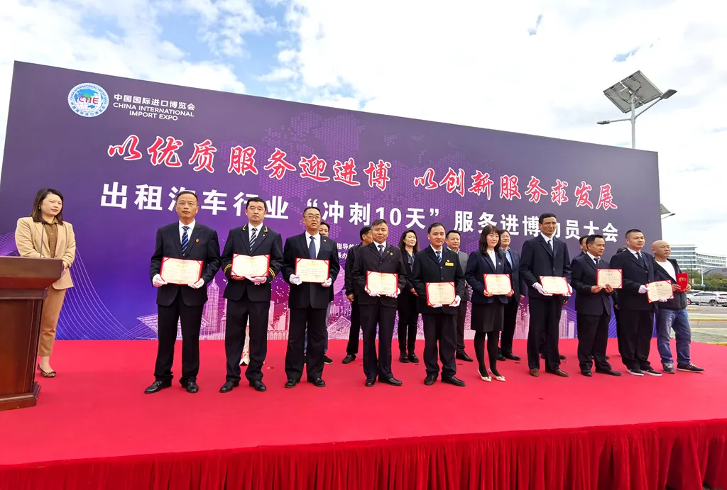 第四届中国国际进口博览会开幕在即,为展现上海出租汽车行业的保障能力和精神面貌,10月25日上午,市道路运输局、市道运中心、出租汽车暨汽车租赁行业协会、行业工会在国家会展中心停车场召开了“以优质服务迎进博,以创新服务求发展”出租汽车行业“冲刺10天”服务进博动员大会,并以此为契机,开展“全面提升巡游出租车服务质量”专项工作,进一步提升本市巡游车的服务水平,展现行业新形象、新面貌、新风尚。