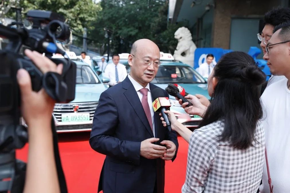 2018年在荣威新能源出租车发车仪式上接受记者采访