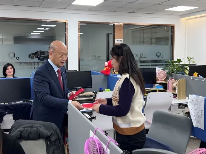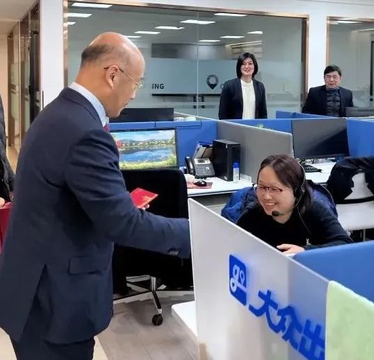 大年初一下午,杨国平董事长来到位于尊龙凯时大厦四楼的尊龙凯时出租租赁出行客服中心,向节日里坚守岗位的客服人员表示慰问,并送上新春祝福,希望客服人员不仅要为乘客和驾驶员提供“有温度”的服务,也要劳逸结合,确保战斗力。