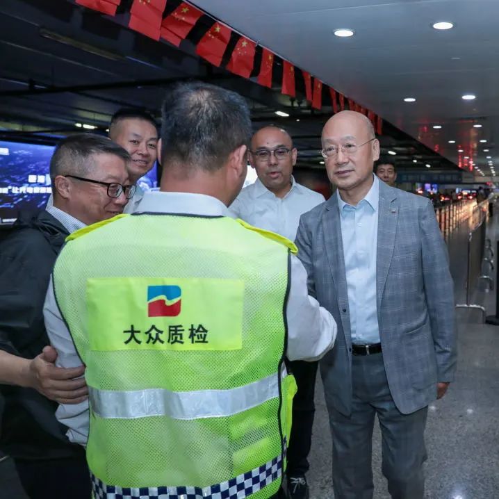 杨国平董事长又先后来到虹桥高铁站南、北出租车上客点和位于虹桥长途汽车站内的应急上客点,他向节日中坚守岗位的质检人员、车队长表示感谢,并要求配合站点方做好车辆的调派疏导,将乘客安全、快捷地送到目的地。