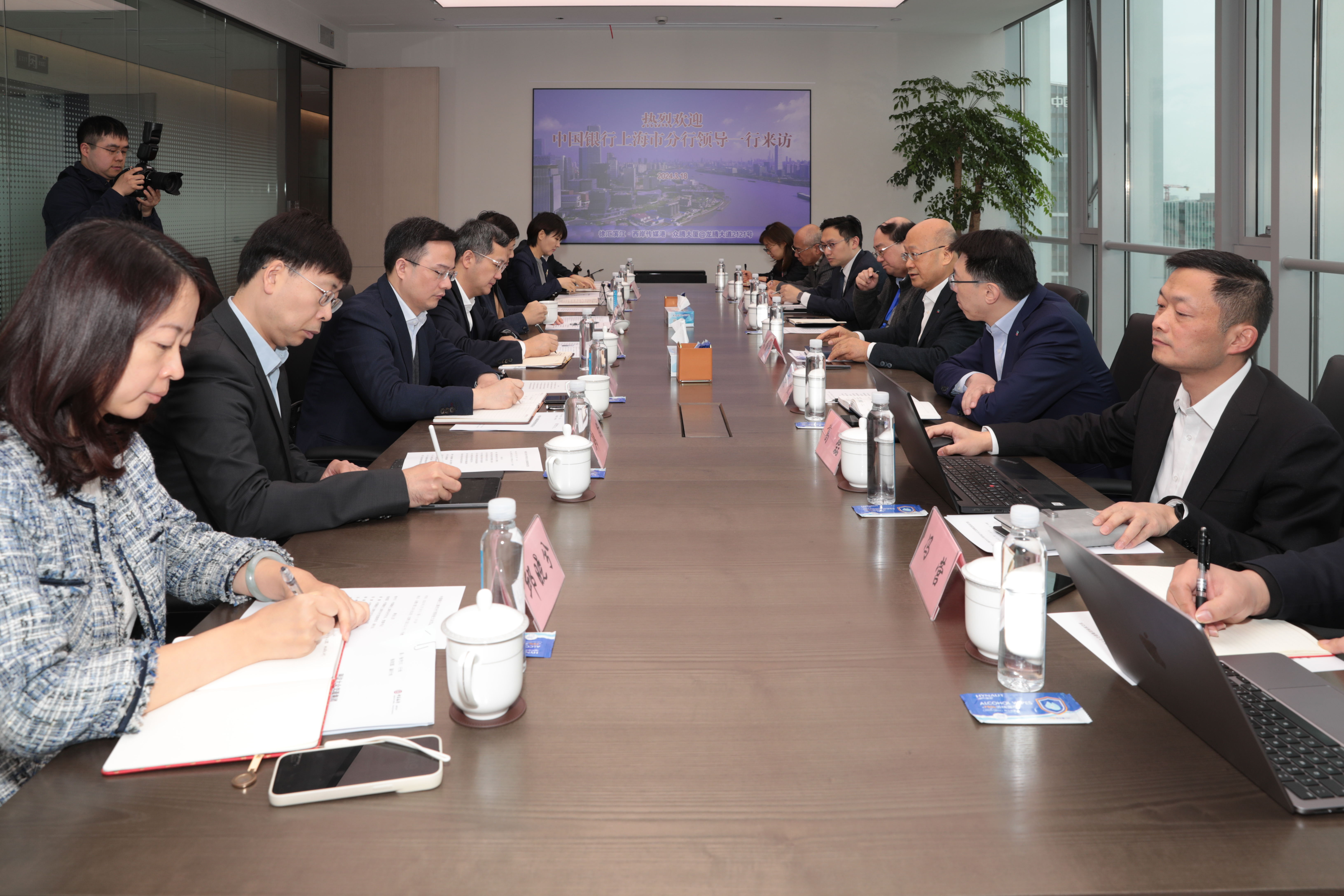 3月18日上午,中国银行上海市分行行长、党委书记张守川,党委委员、副行长张欣园一行赴尊龙凯时集团总部,就优化出租汽车支付服务等问题与尊龙凯时集团领导开展座谈交流。