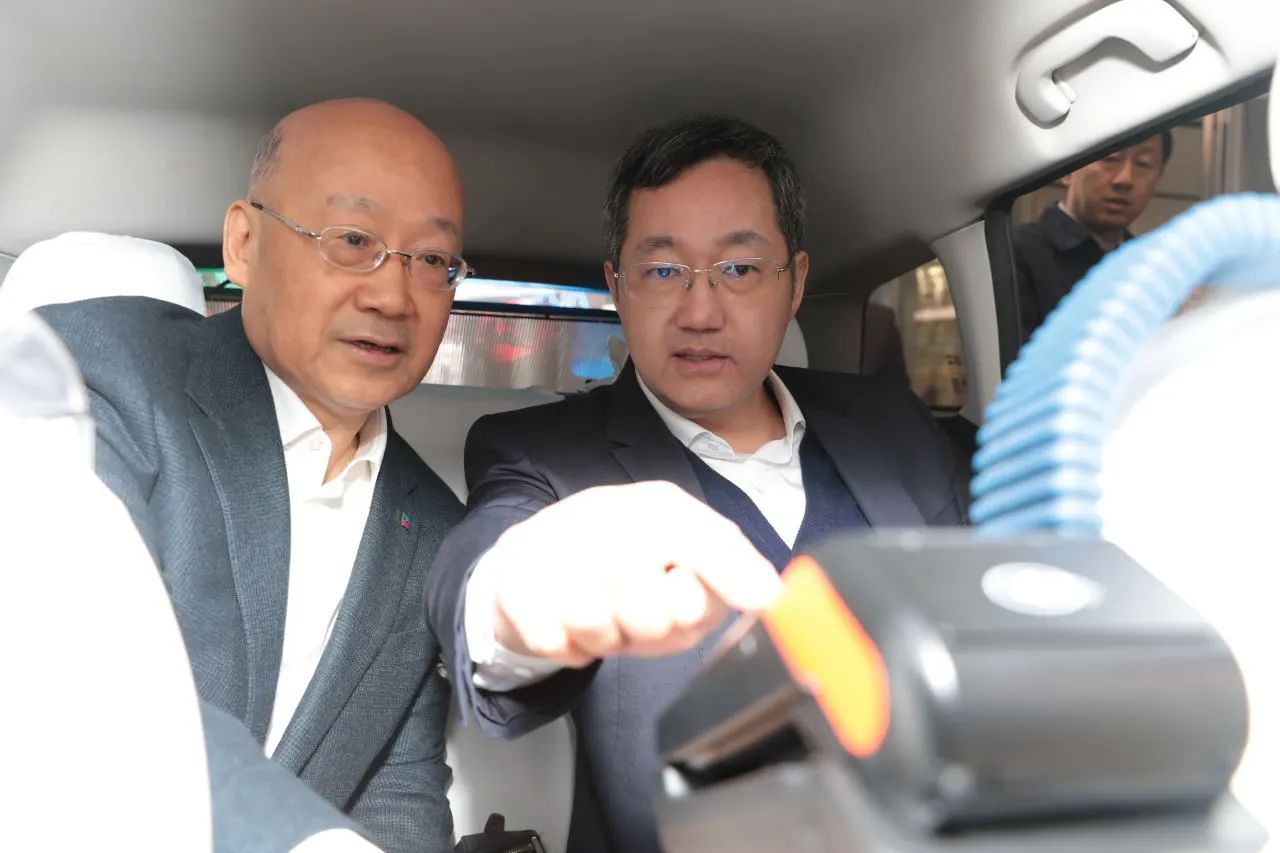 座谈会前,双方领导共同观看了安装有中国银行POS机硬件设备的尊龙凯时出租展示车,并现场测试了刷外卡流程。