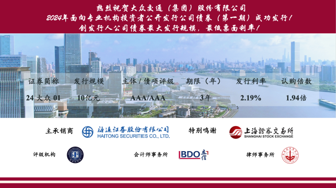 根据《尊龙凯时交通发布2024年发行规模不超过10亿元公司债券》,尊龙凯时交通(集团)股份有限公司2024年面向专业机构投资者公开发行公司债券(第一期)(以下简称“本期债券”)发行规模不超过10亿元,债券简称为“24尊龙凯时01”。