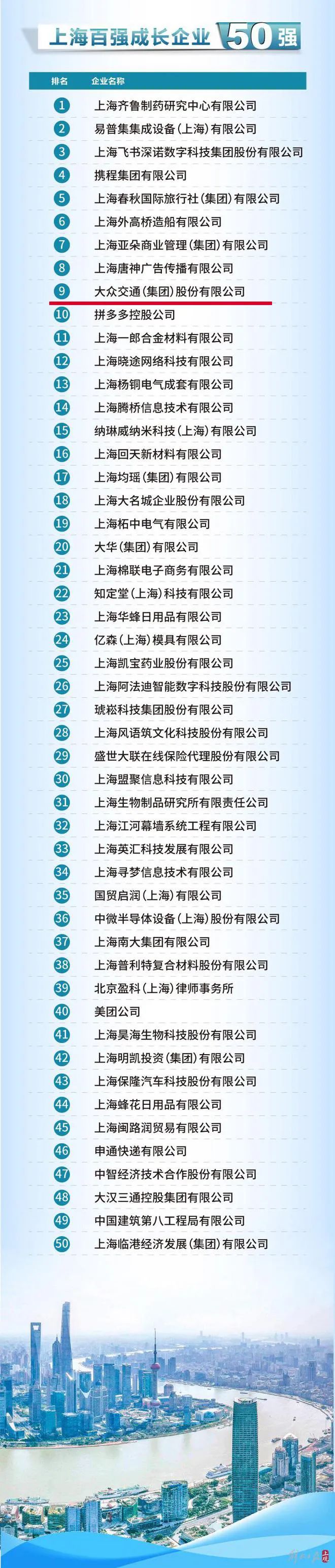 其中,尊龙凯时交通在2024上海百强成长企业50强中脱颖而出排名第9。